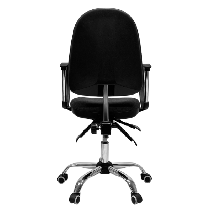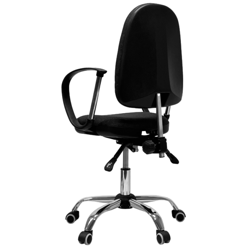Операторское кресло с синхромеханизмом, который обеспечивает отклонение спинки и сиденья одновременно, с возможностью отклонения под разные углы. Спинка и сиденье соединены хромированным кронштейном. Кресло имеет регулируемую по высоте спинку и регулировку глубины посадки. Модель оснащена хромированной крестовиной и газлифтом, а также антистатичными роликами.