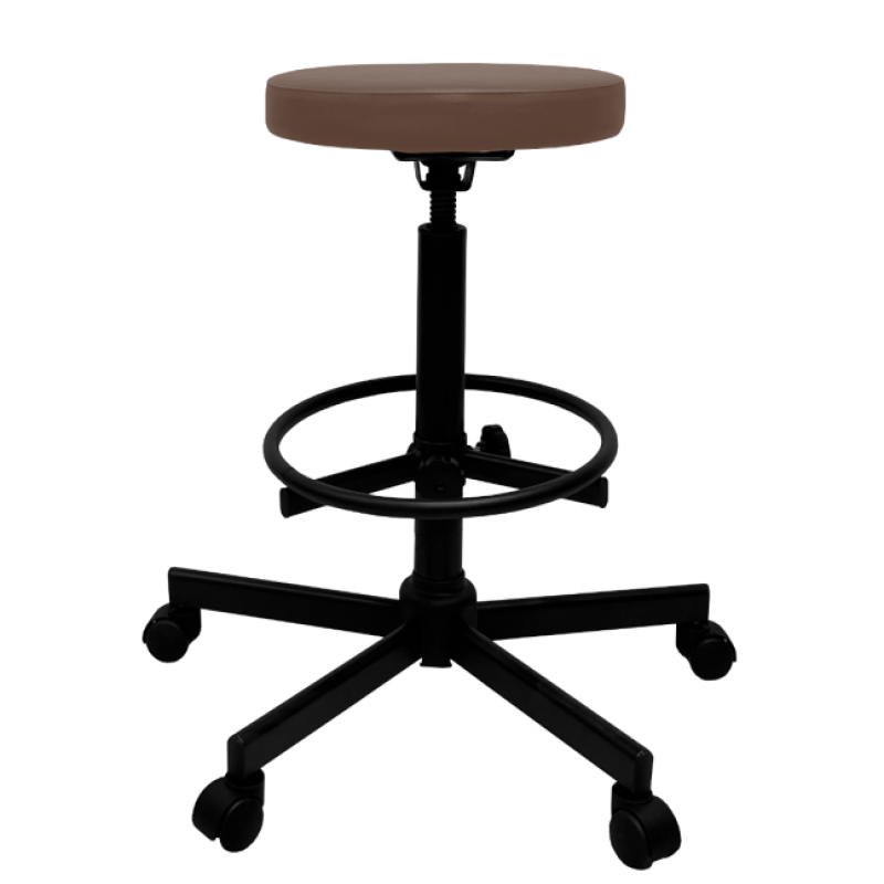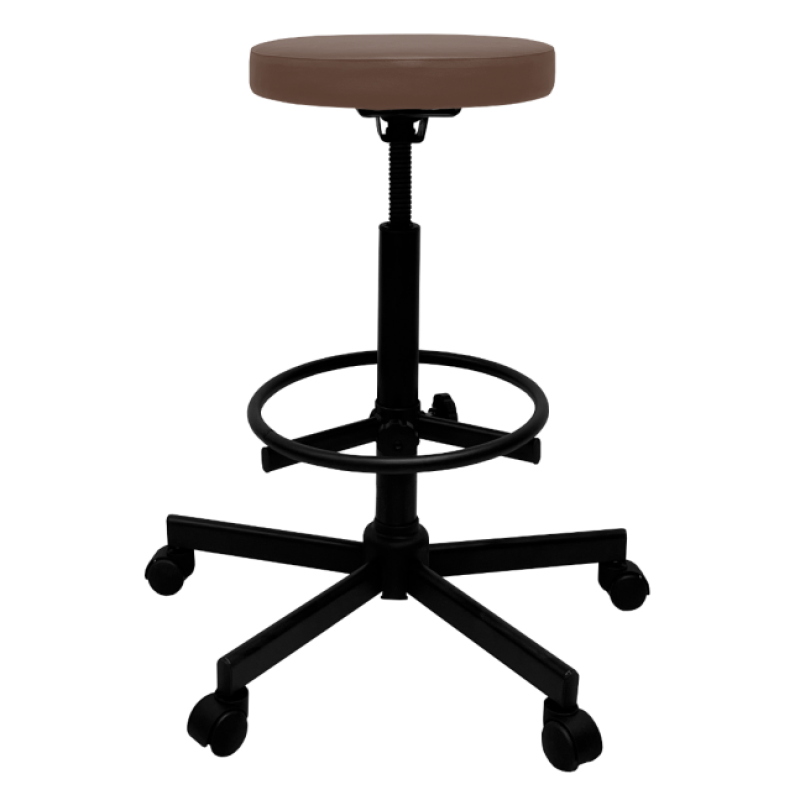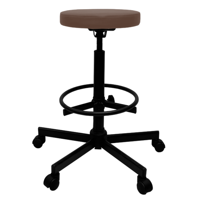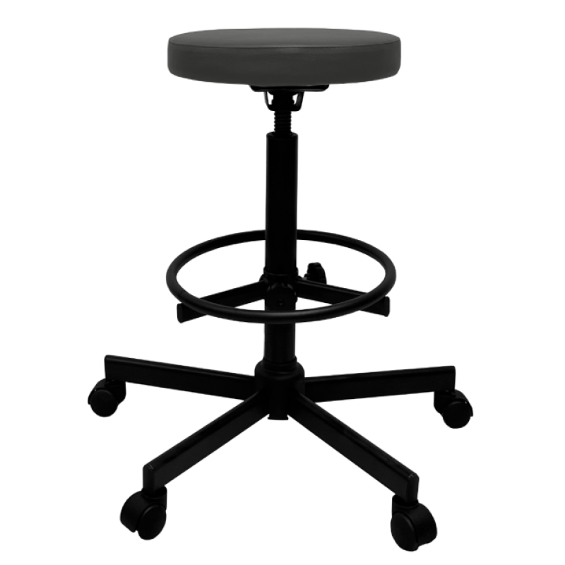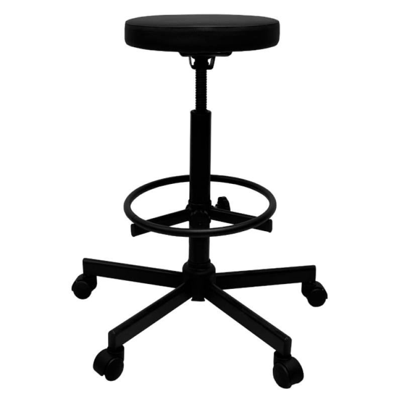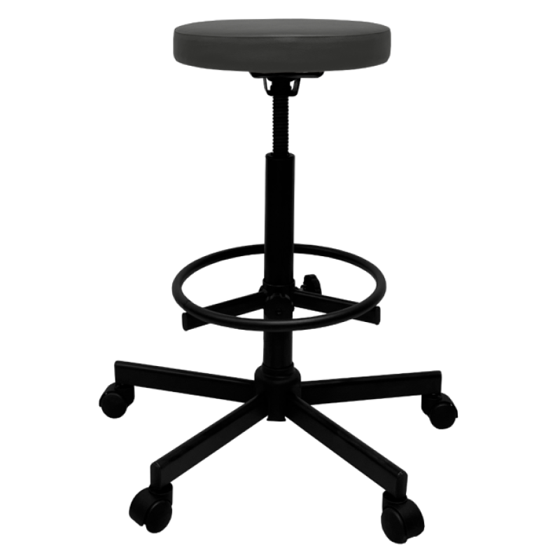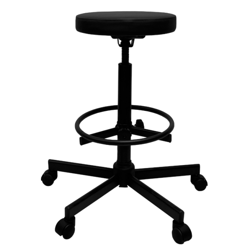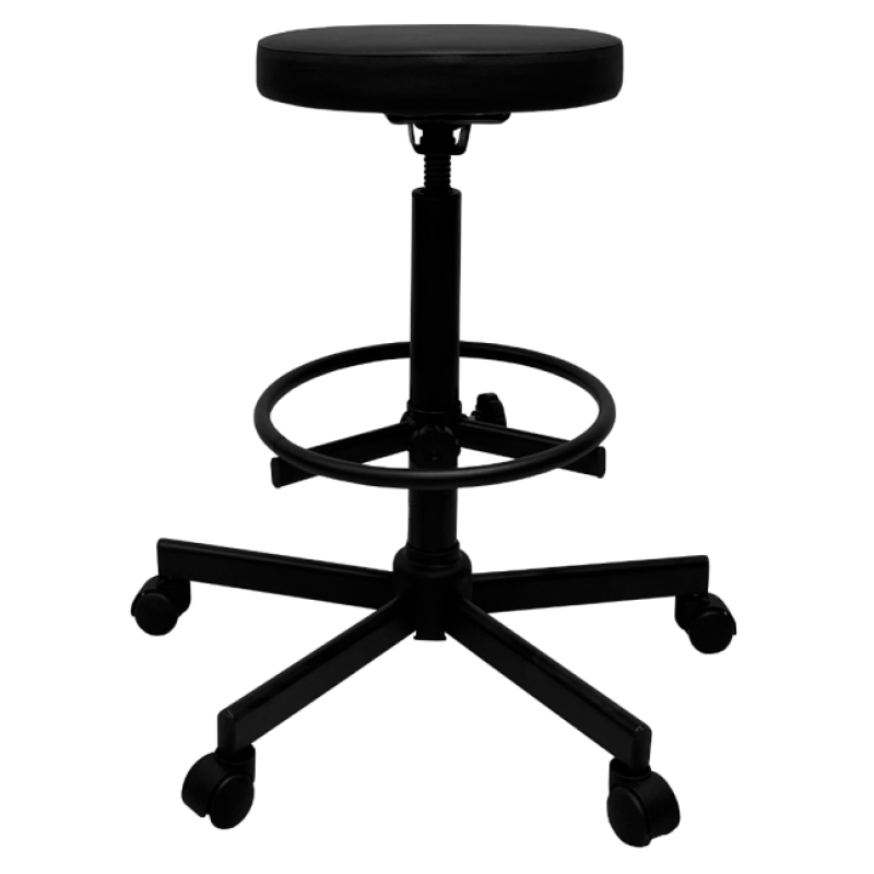 Стул имеет надежный стальной каркас с винтовой опорой, либо газ-лифтом на выбор покупателя, оснащен специальным кольцом-подставкой для ног, которое регулируется по высоте. Эта модель подойдет практически для любого роста сотрудника.